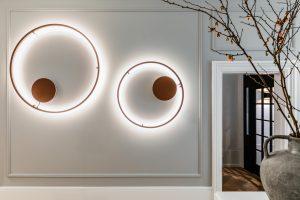 The Orbel Collection by Tech Lighting is inspired by Mid-Century modern art with contrasting geometric shapes.