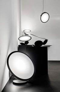 Collection consisting of steel and aluminum suspended, floor and table lamps.